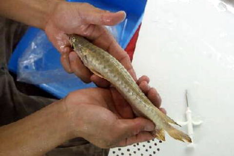 簡単そうに見えますが、アロワナを傷つけず熟練した作業が必要です
